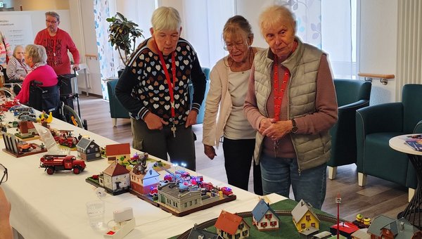 Die Bewohner sahen sich mit viel Freude die Eisenbahnen und andere sehr detailgetreue nachbebaute Modelle an. Die erzählten Anekdoten dazu,