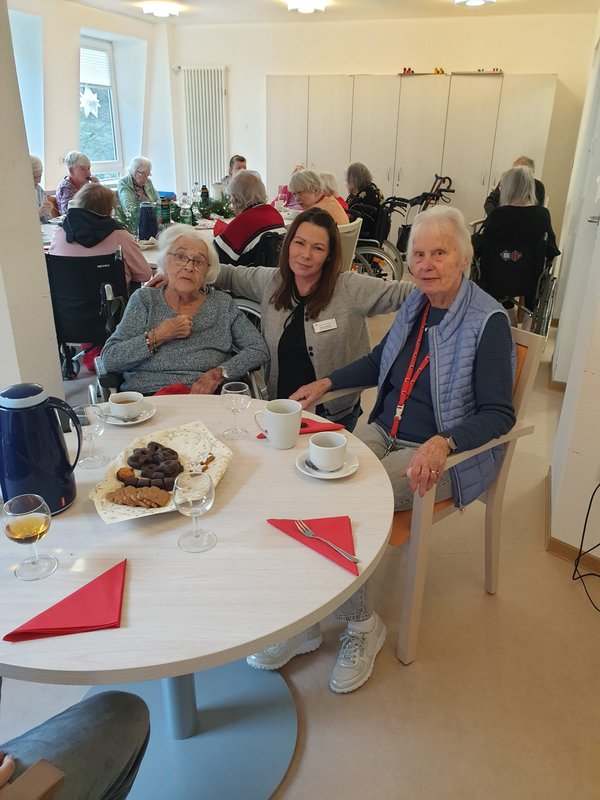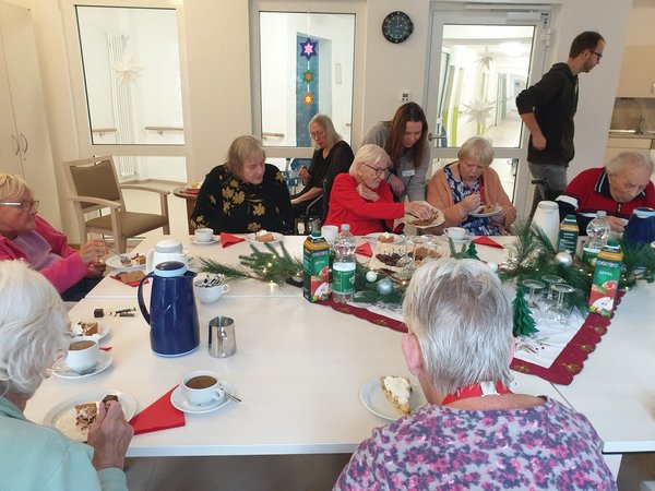 Die Bewohner hatten viel Spaß beim Adventskaffeetrinken mit Kuchen und weihnachtlichem Gebäck. Es wurden kleine Anekdoten erzählt, wie Weihnachten früher zuhause gefeiert wurde und dass immer selbst gesungen, bzw. musiziert wurde. Sie bekamen nicht viele Geschenke, freuten sich aber über Kleinigkeiten.