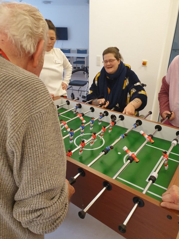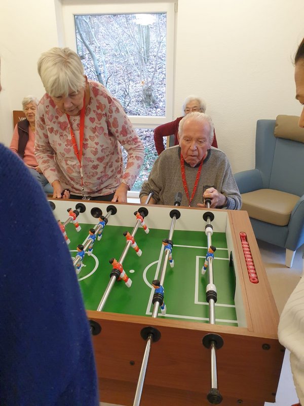 Mit viel Freude wurde am Kicker gespielt. Sehr konzentriert wurde der Ball immer wieder erfolgreich in das generische Tor geschossen. Für die Bewohner immer ein Highlight im Programm.