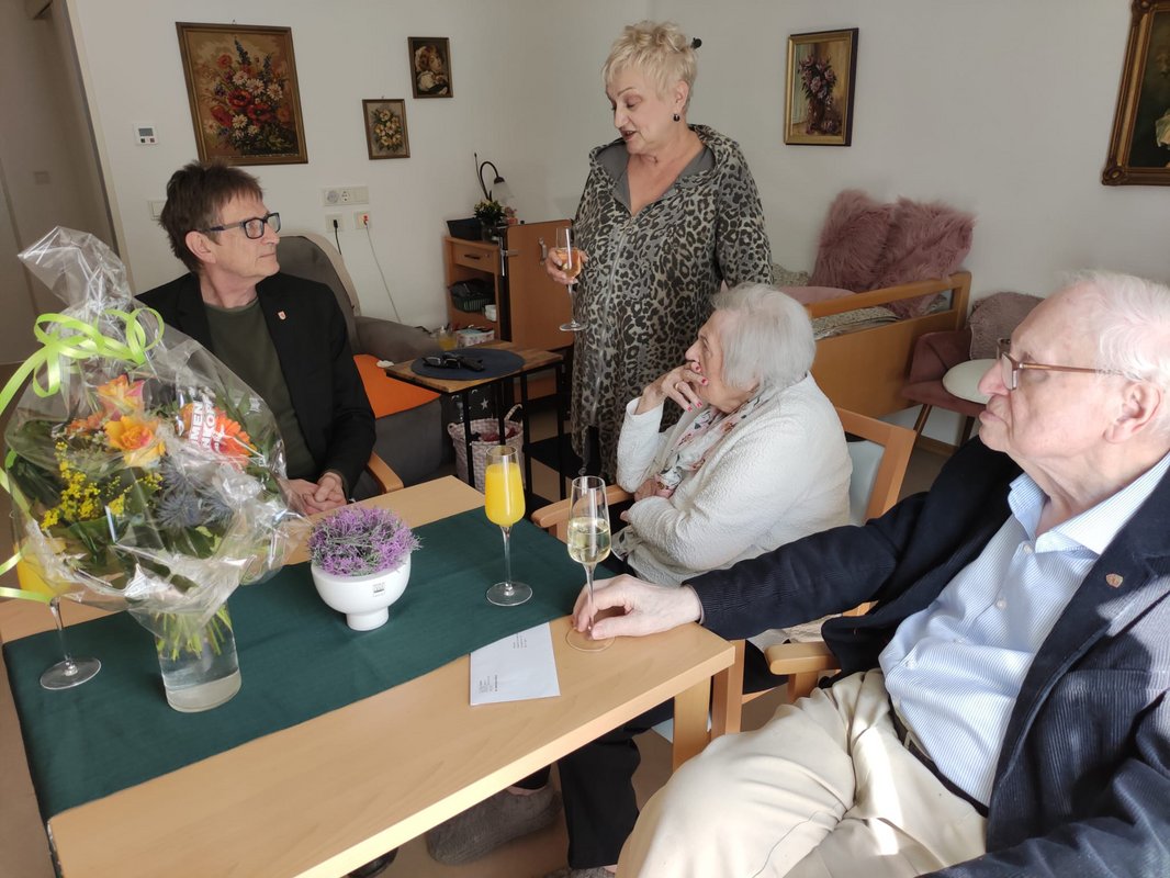 70 Jahre verheiratet! Das ist wirklich etwas besonderes. Ehepaar Kudyba feierten die Gnadenhochzeit mit ihren Angehörigen im Seniorenzentrum. Einrichtungsleitung Herr Hannemann sowie der Bezirksbürgermeister Frank Schmidt gratulierten zum Ehrentag. Die Tochter erzählte, dass ihre Eltern, als alle Kinder und Enkel hier in der Umgebung lebten, kurzerhand die Koffer in Polen packten und zu den Kindern in das Martha-Müller-Seniorenzentrum zogen.