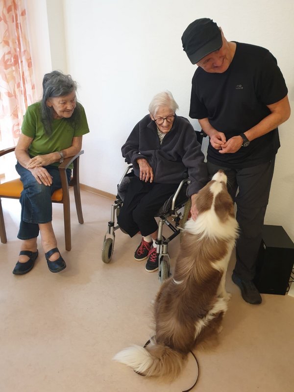 Der Hundebesuchsdienst erfreute die Bewohner in dieser Woche. Es war schön zu sehen, wie “Flocke” von den Bewohnern begrüßt wurde. Es gab viele Streicheleinheiten und natürlich auch das ein oder andere Leckerli. Alle freuen sich jetzt schon auf ein Wiedersehen.