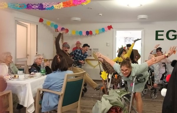 Zum Programm gehörte auch ein Rollatortanz von den Mitarbeitern mit lustigen Kostümen.