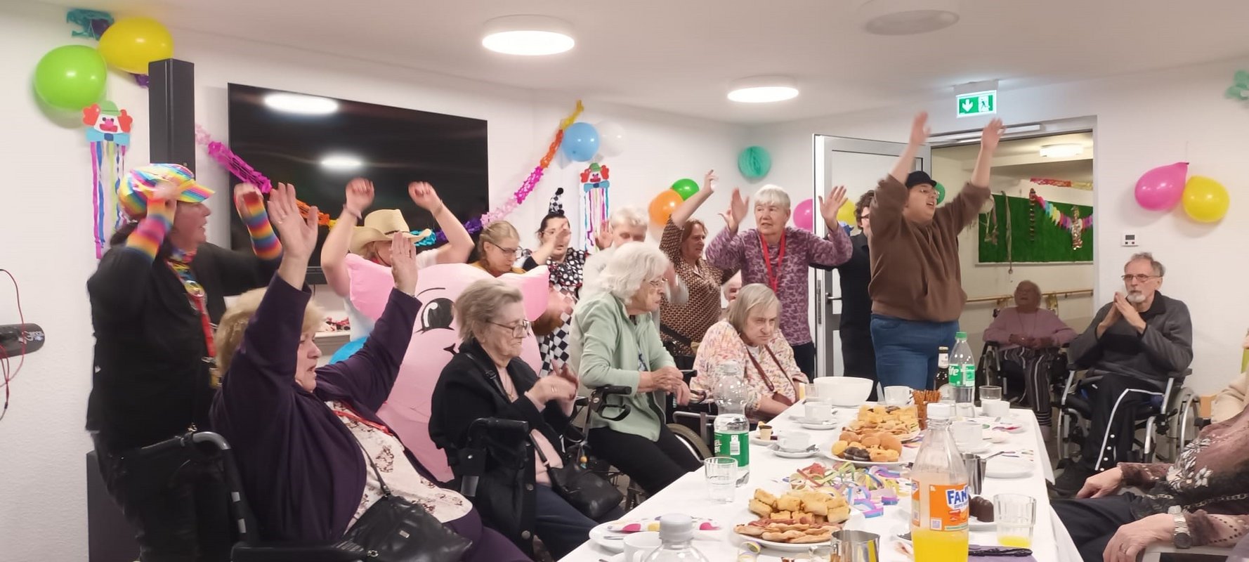 Bei Krapfen, Berlinern, Donuts sowie herzhaftes Fingerfood feierten die Bewohner ausgelassen den Nachmittag.
